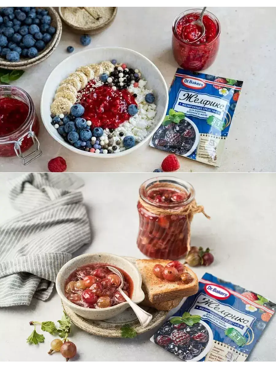 Универсальное средство для приготовления варенья и джемов на основе пектина - натурального желирующего компонента, при добавлении которого варенье приобретает приятную джемовую консистенцию. С “Желфикс 3:1” вы экономите сахар, добавляя лишь 350 г сахара на 1 фруктов и ягод. Используя продукт “Желфикс”, варенье нужно варить не более 3х минут после закипания, в результате чего фрукты и ягоды сохраняют свой натуральный вкус и цвет.
