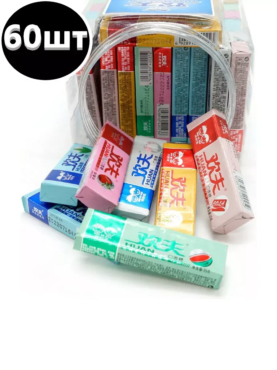 Дарим твоему дню взрыв вкусов и безграничный заряд энергии с жевательными резинками Huanfu! Это сочный и долгоиграющий вкус, который оценит каждый. Жевательная резинка в формате пластинок обладает мягкой приятной текстурой и удивительно долгим вкусом, а стильная пачка легко помещается в кармане и в сумочке, не теряя форму. Такая жвачка не только освежит дыхание и оставит после себя приятное послевкусие, но и поднимет настроение Подарите себе и своим близким момент сладкого наслаждения. В комплекте 1 пластиковая банка, в которой 60 штук жвачек ассорти вкусов: мята, кола, арбуз, клубника, сливочный, а также со вкусом злаков.