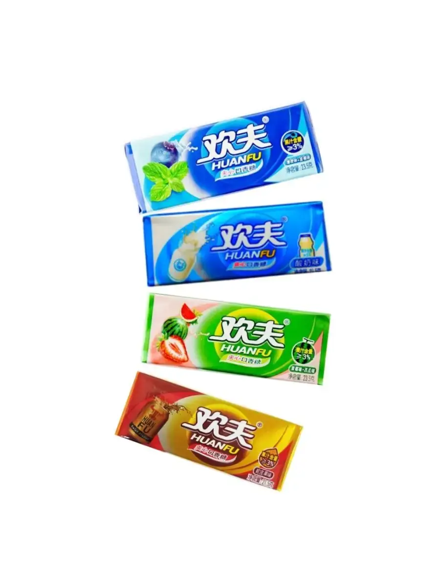 Жевательная резинка «HUANFU» с разнообразной начинкой понравится и взрослым и детям. Она долго сохраняет насыщенный вкус и не теряет эластичность. Из этой жевательная резинки хорошо надуваются пузыри, что делает ее не только лакомством, но и увлекательным развлечением.