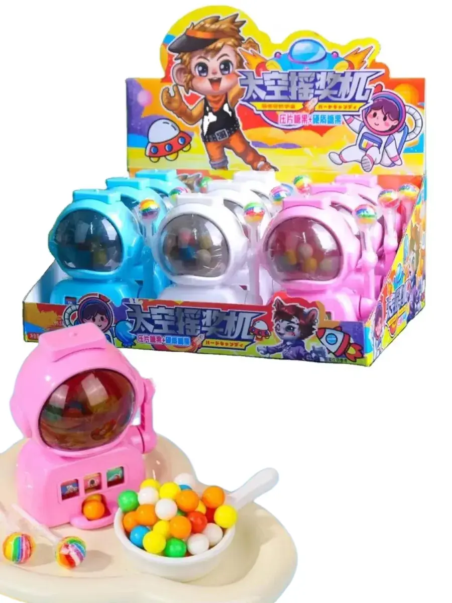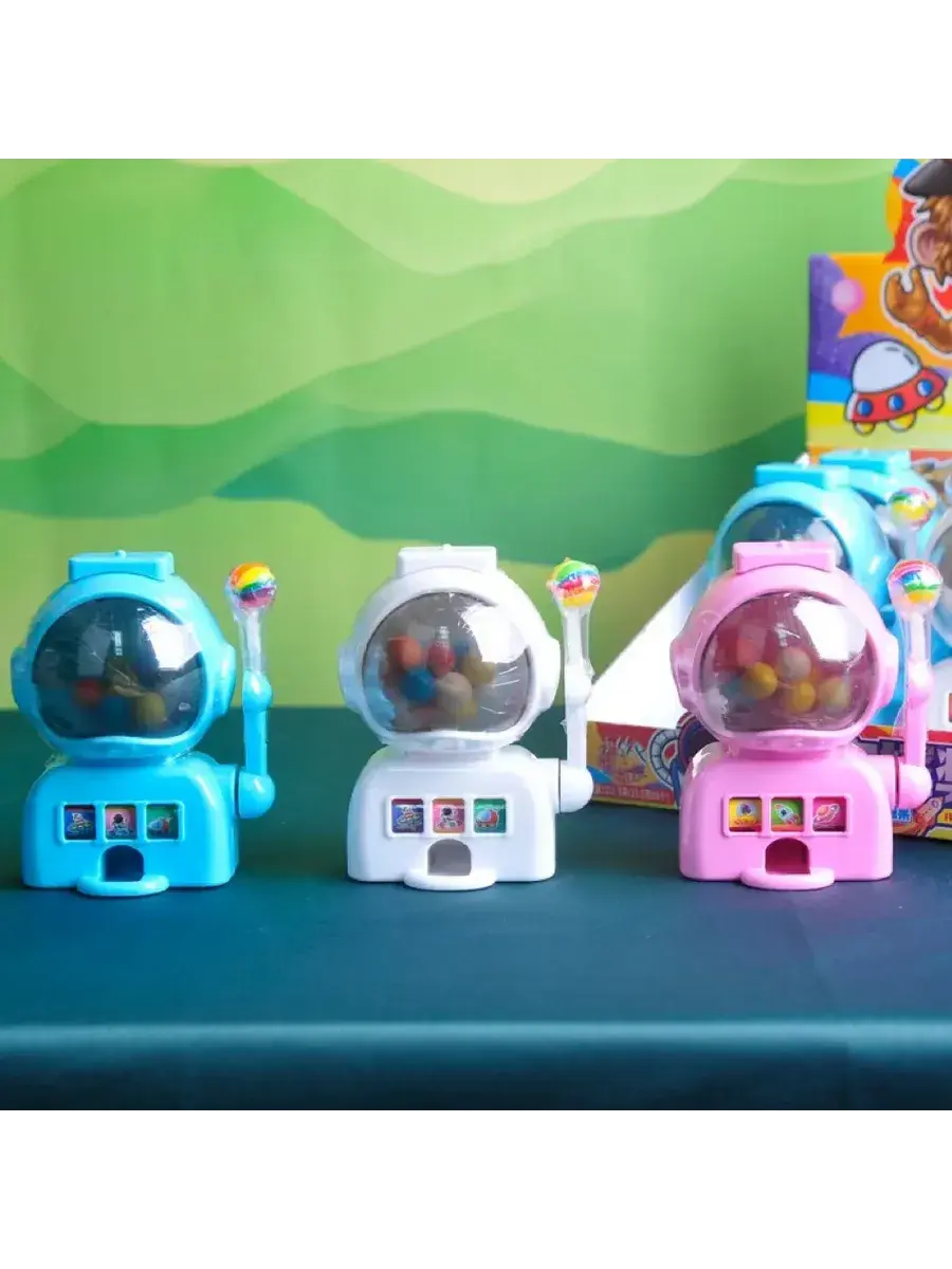 Ваш билет в космос — это оригинальная игрушка в виде забавного космонавта! Внутри его шлема спрятаны яркие жевательные конфеты, которые станут настоящим топливом для вашего воображения. Этот миниатюрный "игровой автомат" не только радует взгляд, но и дарит сладкие сюрпризы. Нажмите кнопку, как в настоящем автомате, и наблюдайте, как жевательная конфета вылетает из космического шлема! Каждый раз — неожиданный вкус и море веселья. Готовы испытать свой звездный автомат? Запускайте сладкую миссию! В блоке 9 штук.