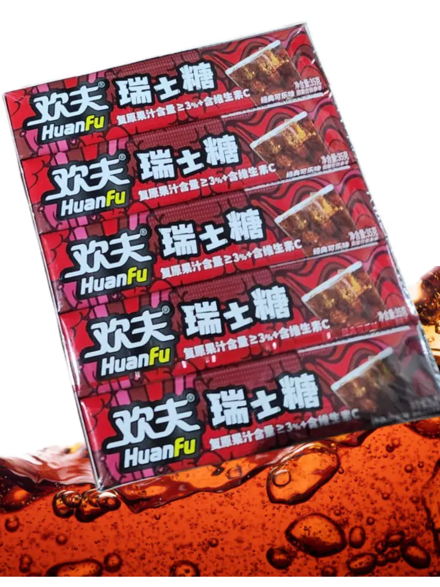 Попробуйте нечто совершенно новое с жевательными конфетами Huanfu! Это ваш маленький секрет удовольствия, готовый подарить мгновения нежности и гармонии. Свежесть Колы напомнит вам о любимом напитке и ярких моментах. Вкус всеми любимой газировки дарит ощущение бодрости и легкости. Каждая конфетка – это мгновение уюта, которое можно взять с собой куда угодно. Наслаждайтесь и удивляйтесь тому, как простое удовольствие может быть таким необычным! В блоке 20 пачек по 35г.