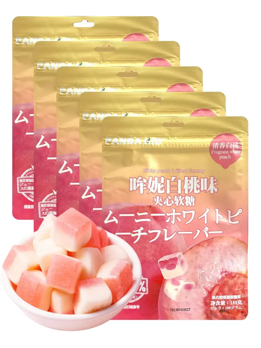 Представляем мягкие жевательные конфеты со вкусом сочного персика! Они удобно упакованы, чтобы наслаждаться свежим вкусом в любое время и в любом месте. Попробуйте мармеладные кубики, которые подарят вам настоящее персиковое наслаждение! Мармеладные кубики от Panda Kid имеют невероятно нежную и мягкую текстуру, которая буквально тает во рту. В каждом кусочке сочетаются легкая упругость и бархатистость, что делает каждую конфету настоящим наслаждением. Их приятно жевать, и они словно обволакивают язык насыщенным виноградным вкусом. Эти мармеладки не просто вкусные, но и невероятно приятные на ощупь, что делает каждую конфету маленьким гастрономическим открытием! В комплекте 5 пачек по 58г.