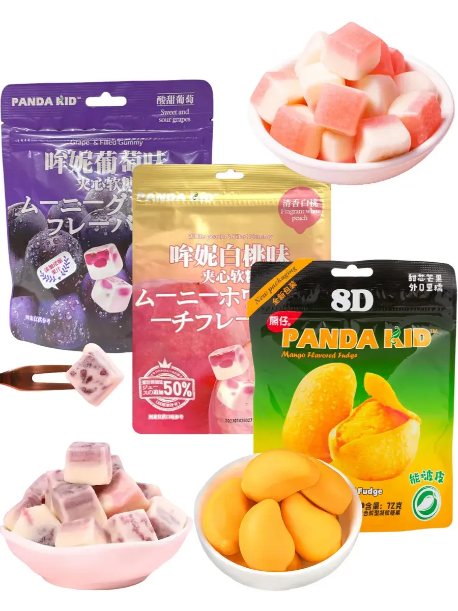 Представляем мягкие жевательные конфеты со вкусом сочного винограда, персика и манго! Они удобно упакованы, чтобы наслаждаться свежим вкусом в любое время и в любом месте. Попробуйте мармеладные кубики, которые подарят вам настоящее фруктовое наслаждение! Мармеладные кубики от Panda Kid имеют невероятно нежную и мягкую текстуру, которая буквально тает во рту. В каждом кусочке сочетаются легкая упругость и бархатистость, что делает каждую конфету настоящим наслаждением. Их приятно жевать, и они словно обволакивают язык насыщенным вкусом фруктов. Эти мармеладки не просто вкусные, но и невероятно приятные на ощупь, что делает каждую конфету маленьким гастрономическим открытием! В комплекте 3 пачки ассорти вкусов.