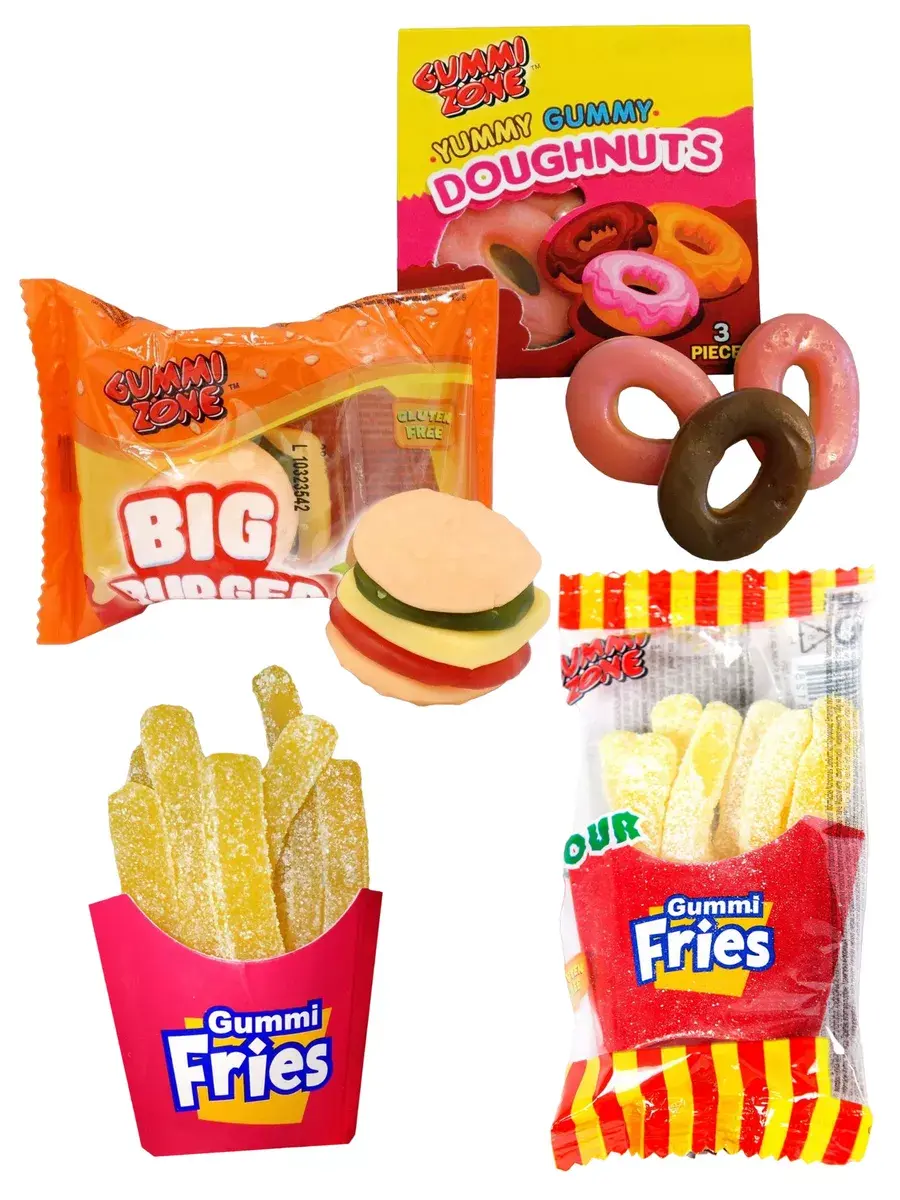 Мармелад Gummi Zone – удивительно вкусный жевательный мармелад, выполненный в форме знаменитых американских пончиков, бургеров и картошки Фри. Мармеладные вкусняшки – это яркое лакомство с насыщенным вкусом фруктов.