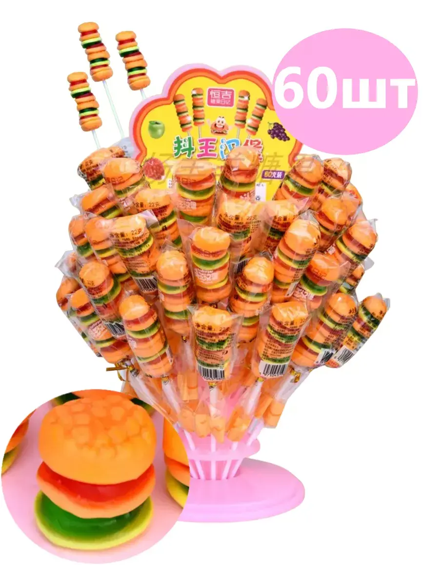 Добро пожаловать в удивительный мир необычных десертов с жевательными бургерами на палочке! Это не просто мармелад – это настоящий праздник в виде невероятно аппетитных бургеров. Забудьте о скучных сладостях, фруктовые бургеры на палочке легко брать с собой - это весело и удобно. Бургеры искусно собираются в очаровательный букет, делая их не только вкусным лакомством, но и привлекательным подарком. Такой букет – это идеальный выбор для Дня Рождения, дня Святого Валентина, в качестве сладкого жеста – подходит для любого торжественного случая. В комплекте 1 блок, в котором 60шт.
