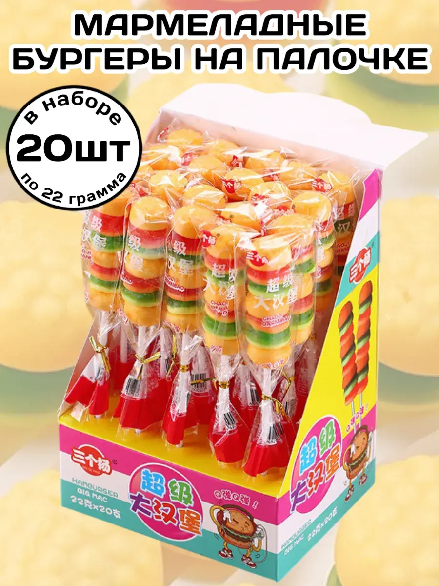 Готовы к настоящему гастрономическому приключению? Мы представляем Вам жевательный мармелад в виде аппетитных бургеров на палочке — это не просто сладость, это настроение! Порадуйте себя и своих близких! Этот мармелад станет идеальным дополнением к вечеринкам, уютным вечерам с друзьями или просто как сладкий перекус в течение дня. Идеально для большой компании или в подарок, который гарантированно вызовет улыбку. Удивите своих друзей, коллег или детей этим необычным угощением! Оно станет не только вкусным лакомством, но и настоящей находкой для фотографий.