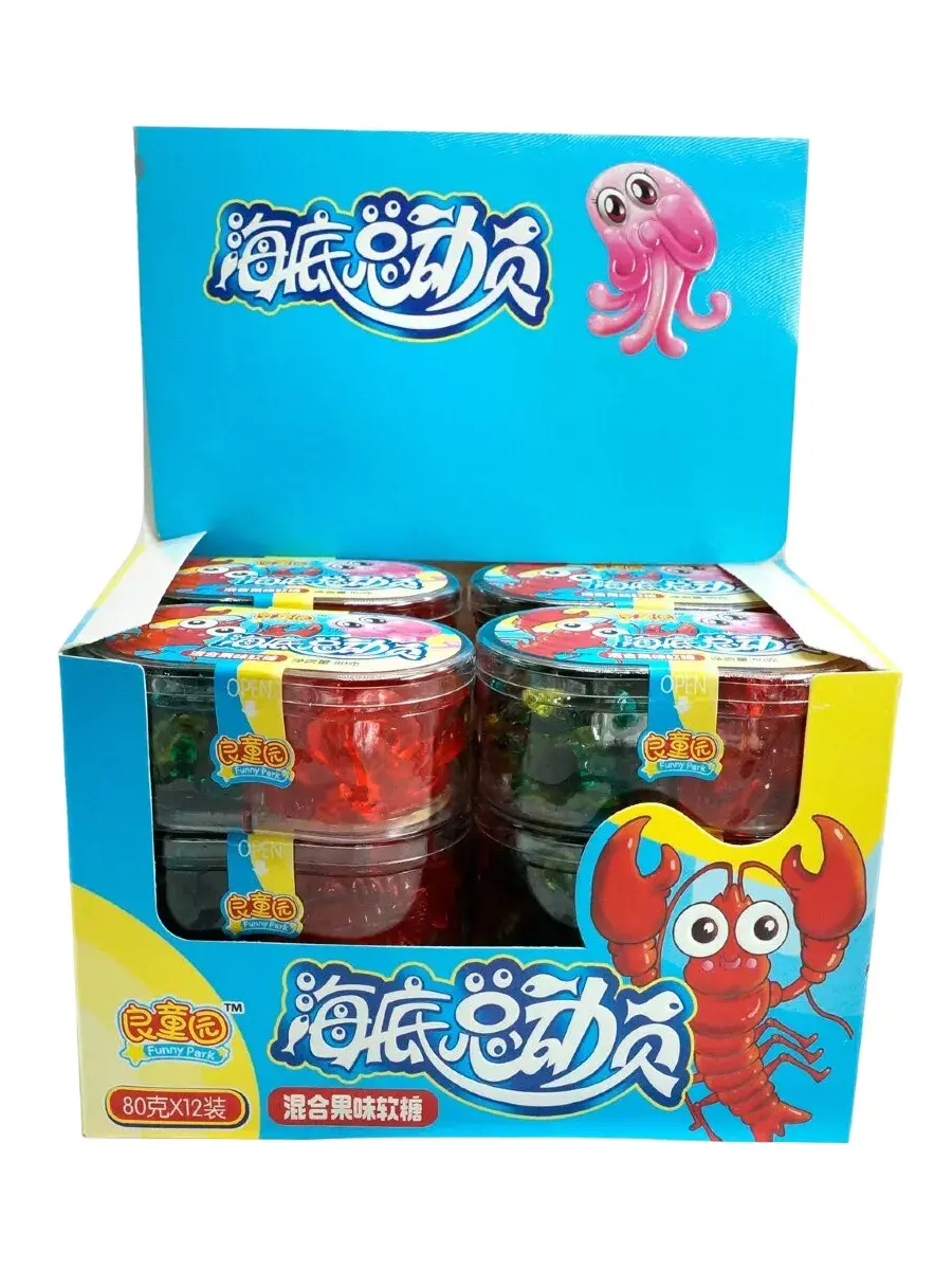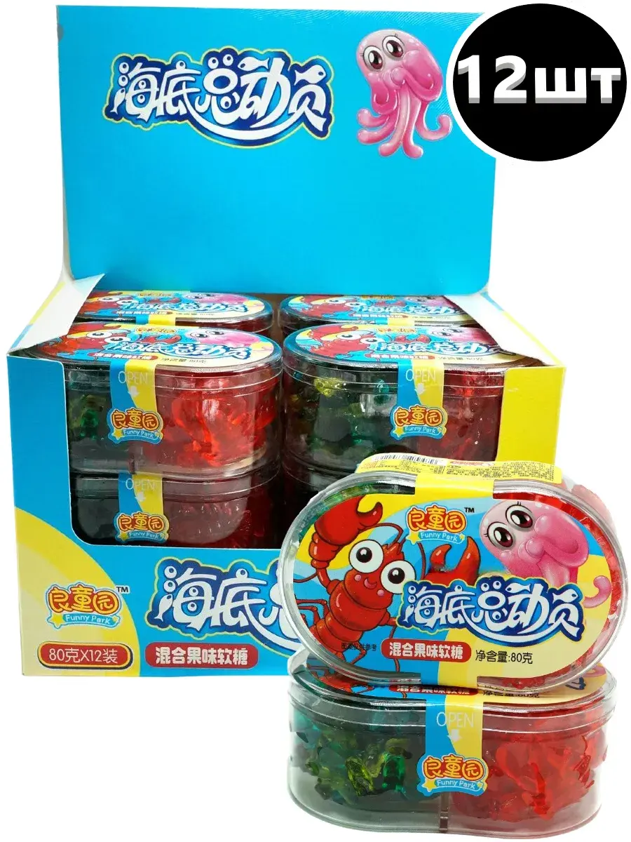 Погрузитесь в подводный мир с жевательным мармеладом в виде морских обитателей! В каждой упаковке вы найдете ярких и забавных морских обитателей: осьминогов, крабов, и других подводных друзей, которые принесут вам сладкие и сочные вкусы. Настоящий праздник для любителей необычных сладостей. Каждая упаковка наполнена яркими фруктовыми вкусами и порадует как детей, так и взрослых. Почему бы не сделать ваш день немного веселее? Фруктовая сочность и аппетитный вид подарят радость каждому, кто решится попробовать. Будьте готовы к сладкому удивлению — откройте упаковку и наслаждайтесь! В блоке 12 упаковок по 80г.