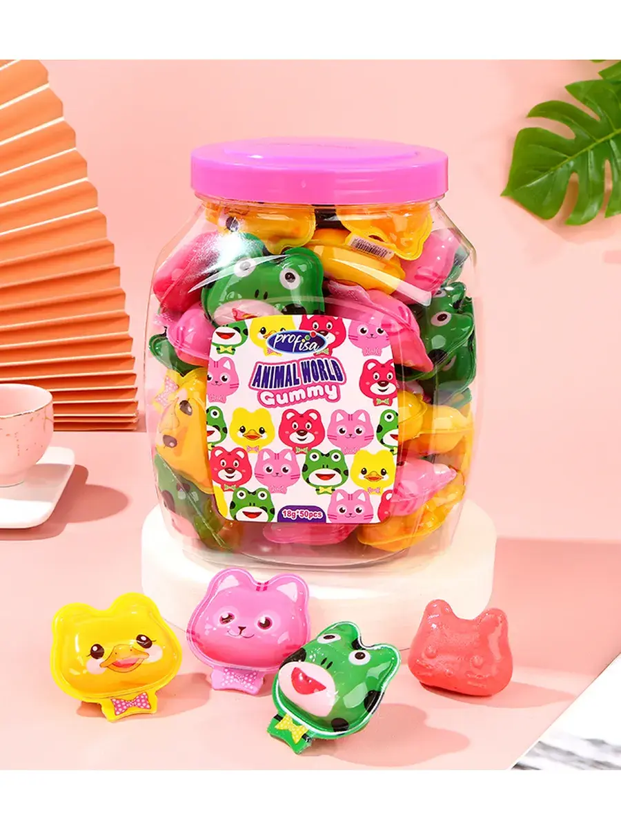 Жевательный мармелад Зверята с начинкой из фруктового джема очень приятен на вкус и напоминает изысканный десерт. Это лакомство порадует вас своим вкусом и оригинальностью. Каждая конфета в индивидуальной яркой упаковке в виде веселых зверят. Такой необычный дизайн оценят как взрослые, так и дети. Удобная упаковка сохраняет все вкусовые качества мармелада, позволяет брать десерт с собой и устраивать перекус в любое время. Идеально для детских праздников, веселых вечеринок и просто радостных моментов! В банке 50 штук.