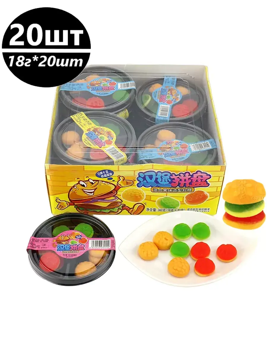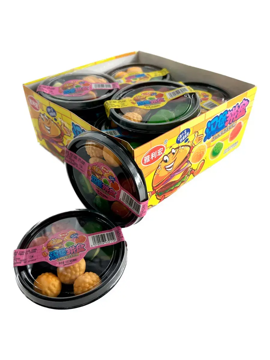 Удивительно вкусный жевательный мармелад, выполненный в форме знаменитых бургеров, которые вы можете приготовить сами! Для этого всего лишь необходимо сложить все кусочки друг на друга и сладкое мини блюдо готово. Мармеладные бургеры – это яркое лакомство с насыщенным вкусом фруктов и упругой текстурой. Веселья от мармеладных бургеров значительно больше, чем от настоящих. Помимо необычной формы, мармелад имеет мягкую жевательную текстуру, благодаря которой, лакомство просто тает во рту. В комплекте 1 блок, в котором 18 коробочек. В каждой коробочке 9 частей, из которых вы получите 3 бургера.