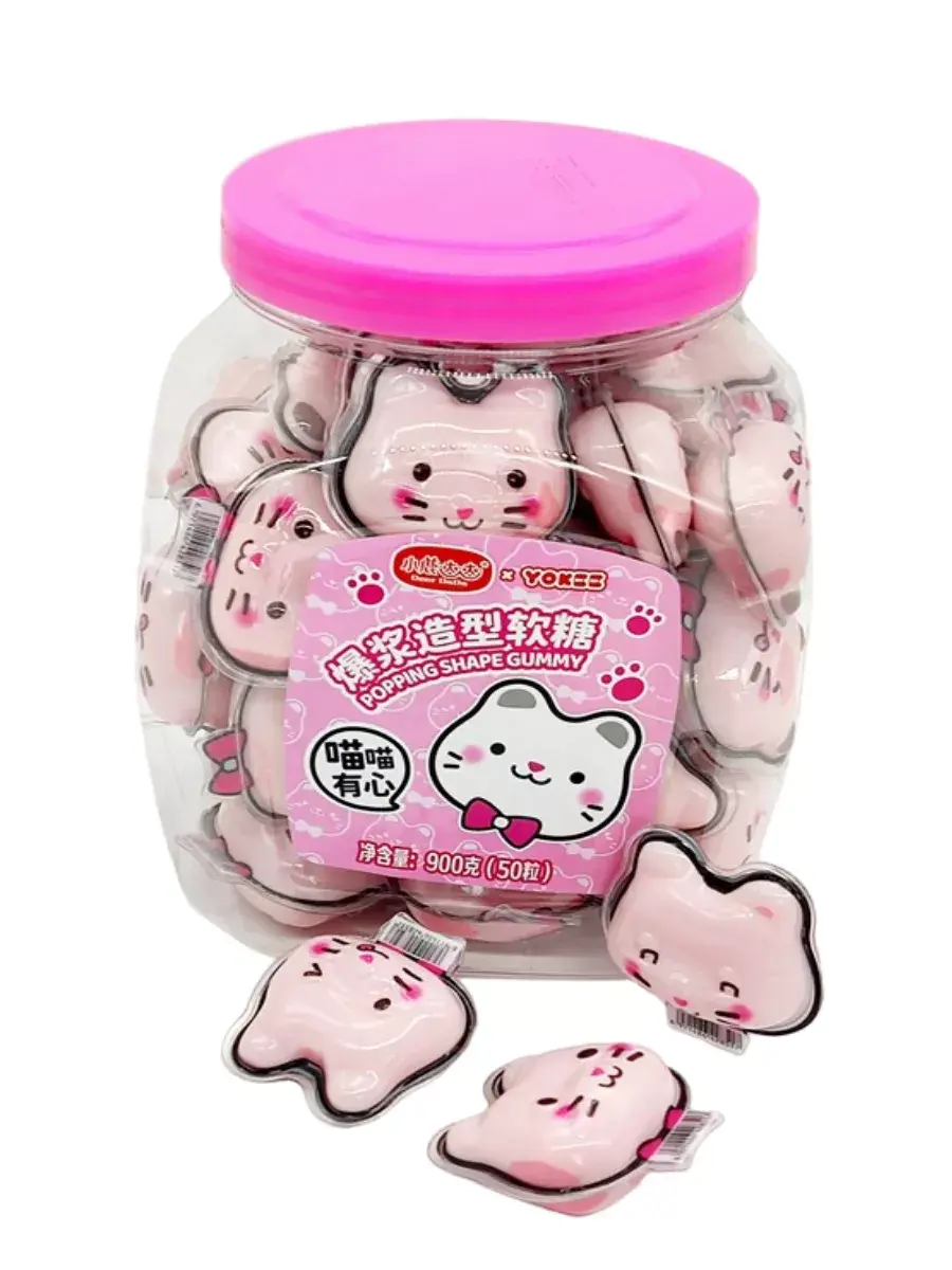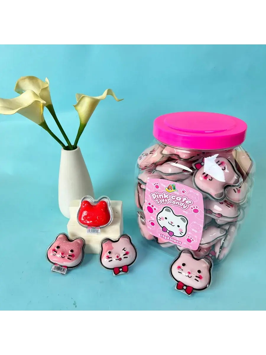 Каждая конфета в индивидуальной яркой упаковке с изображением мордочки розового котика. Такой необычный дизайн оценят как взрослые, так и дети. Удобная упаковка сохраняет все вкусовые качества мармелада, позволяет брать десерт с собой и устраивать перекус в любое время. В банке 50 штук.