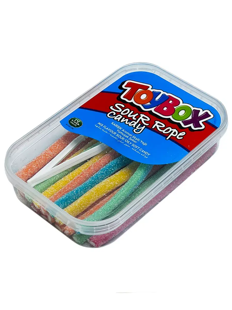 Жевательный мармелад ToyBox турецкого производства обладает уникальной текстурой, которая сочетает в себе упругость и нежность, что добавляет веселья в процесс его употребления. Sour Rope Candy представлены в виде веревок различных цветов. Они имеют фруктовый вкус с особой кислинкой благодаря специальной обсыпке. Яркий и красивый дизайн бокса позволяет использовать его в качестве подарка для родных и близких. В упаковке также идут пластиковые щипцы для вашего удобства. Мармелад упаковывается индивидуально в небольшие боксы, весом 200г. что делает их удобными для переноски и употребления в любое время. В комплекте 1 бокс.