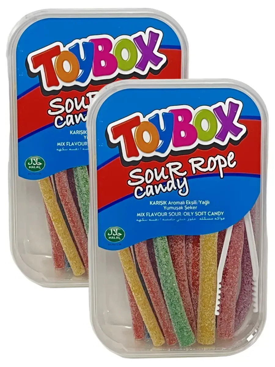 Жевательный мармелад ToyBox турецкого производства обладает уникальной текстурой, которая сочетает в себе упругость и нежность, что добавляет веселья в процесс его употребления. Sour Rope Candy представлены в виде веревок различных цветов. Они имеют фруктовый вкус с особой кислинкой благодаря специальной обсыпке. Яркий и красивый дизайн бокса позволяет использовать его в качестве подарка для родных и близких. В упаковке также идут пластиковые щипцы для вашего удобства. Мармелад упаковывается индивидуально в небольшие боксы, весом 200г. что делает их удобными для переноски и употребления в любое время. В комплекте 2 бокса по 200г.