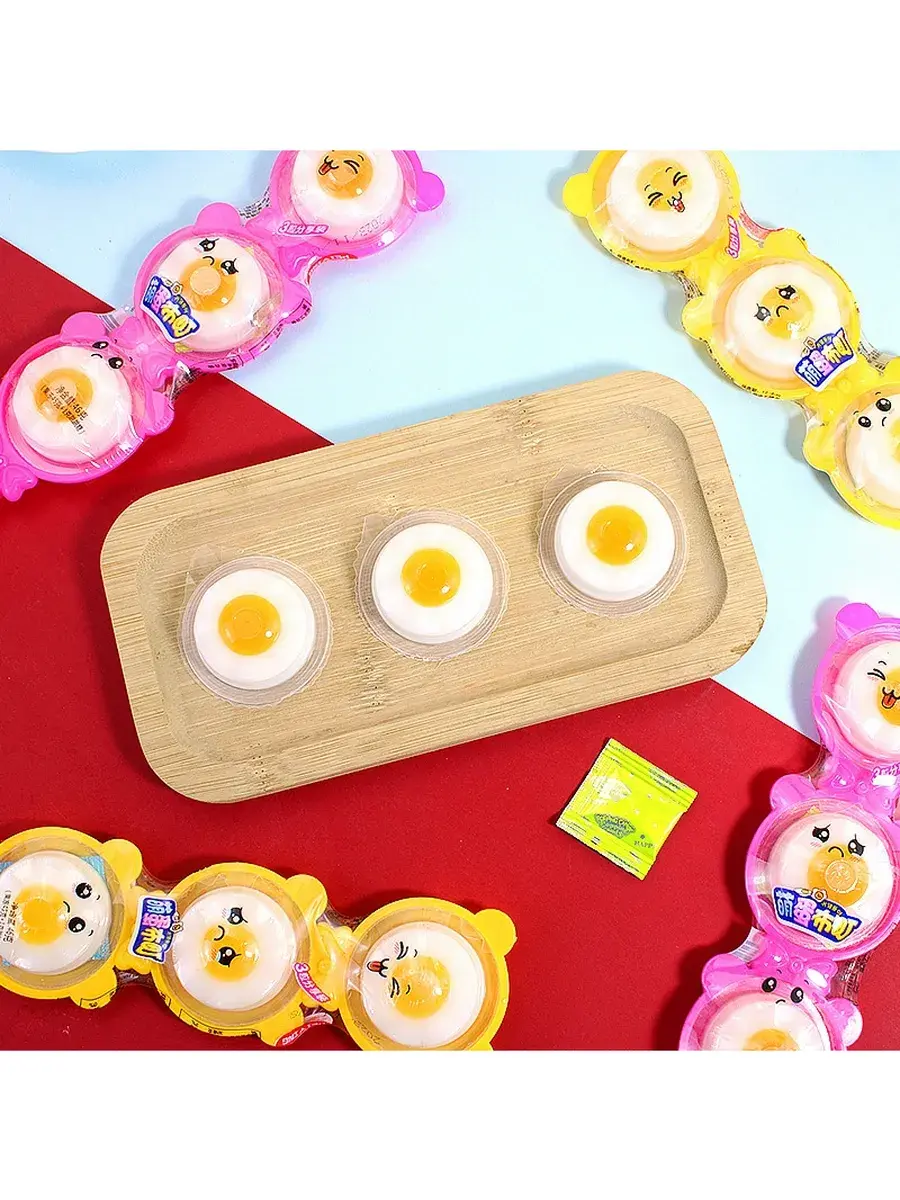Представляем необычный и яркий продукт — желе «Яичница». Это лакомство сразу привлекает внимание своим оригинальным дизайном: каждая конфета выполнена в виде миниатюрного яйца-глазуньи с аппетитным «желтком» и белой основой. Такой формат делает сладость не только вкусной, но и невероятно фотогеничной — идеально для того, чтобы порадовать детей, удивить друзей или украсить сладкий стол. Нежное желе обладает мягкой текстурой и приятной фруктовой сладостью, которая гармонично сочетается с ярким внешним видом. Конфеты упакованы в удобные блистеры по несколько штук, что позволяет легко делиться с близкими или брать с собой в дорогу. В каждой упаковке желейного мармелада предусмотрена маленькая пластиковая вилочка — это делает лакомство ещё удобнее и интереснее. Вилочка подчёркивает игровой характер продукта: детям особенно нравится доставать «яичницу» прямо из формочки, как будто это настоящий завтрак, только сладкий. Такой элемент превращает процесс поедания в весёлый ритуал, а сам десерт — в маленькое шоу.