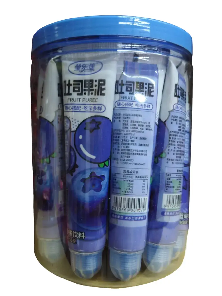 Черничное наслаждение всегда под рукой. Представляем жидкие конфеты с фруктовым пюре из черники в удобном тюбике — это вкус детства и удобство, которое вы оцените! Эти жидкие конфеты — не просто сладость, это настоящее удовольствие для тебя и твоих близких! Сочный черничный вкус: идеален для сладких пауз в течение дня. Формат тюбика: без лишних усилий — выдавливай и наслаждайся! Готово к употреблению: просто открой и наслаждайся моментом. Лови волну черничного удовольствия — сладкий заряд энергии в компактном тюбике! В банке 20 штук по 55г.
