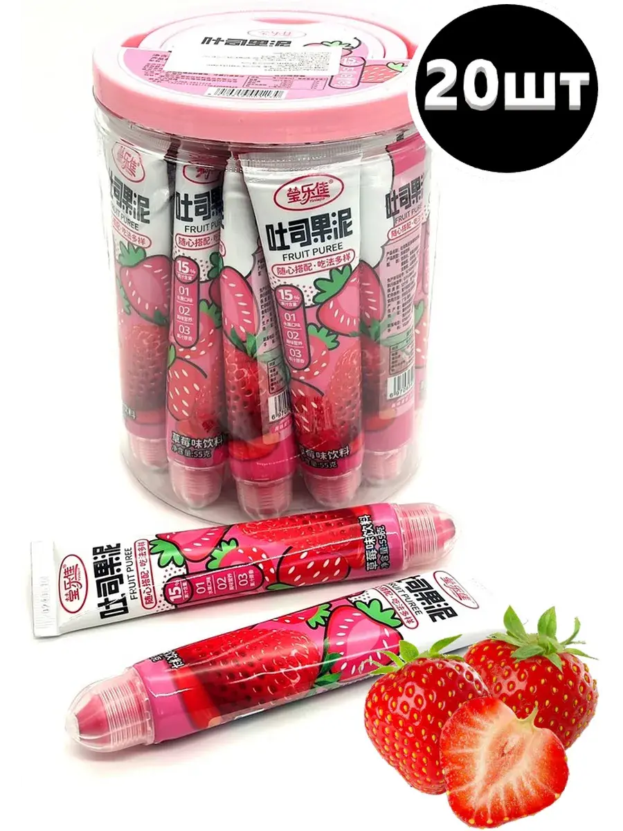 Клубничное наслаждение всегда под рукой. Представляем жидкие конфеты с фруктовым пюре из клубники в удобном тюбике — это вкус детства и удобство, которое вы оцените! Эти жидкие конфеты — не просто сладость, это настоящее удовольствие для тебя и твоих близких! Сочный клубничный вкус: идеален для сладких пауз в течение дня. Формат тюбика: без лишних усилий — выдавливай и наслаждайся! Готово к употреблению: просто открой и наслаждайся моментом. Лови волну клубничного удовольствия — сладкий заряд энергии в компактном тюбике! В банке 20 штук по 55г.